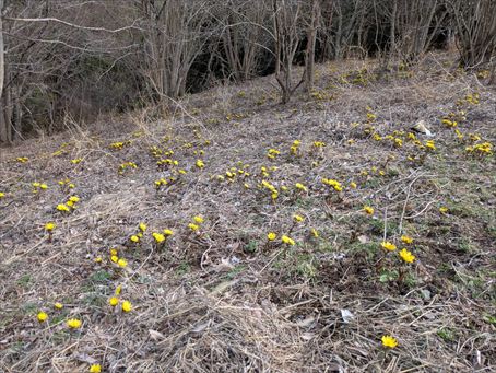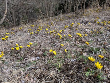 曇りがちな一日でしたが福寿草は明るく花咲いています。